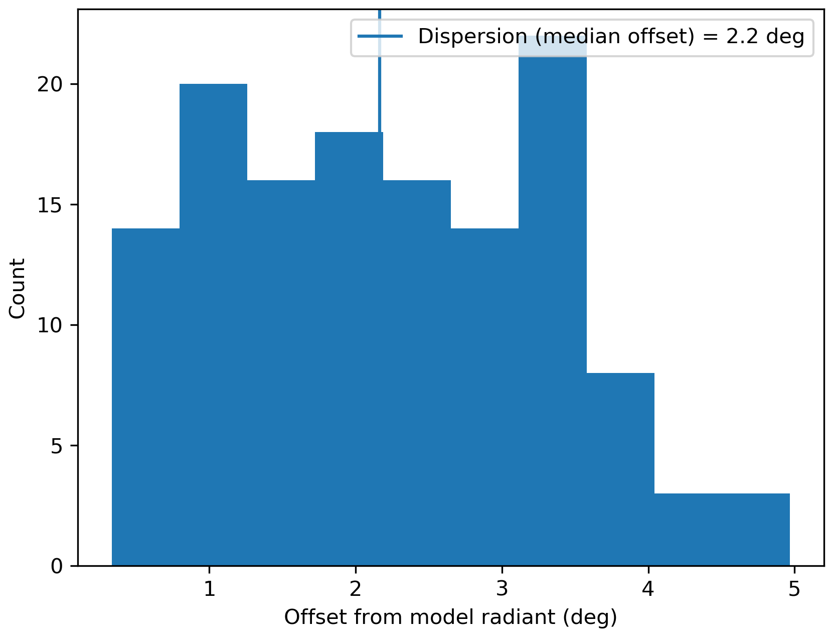 Figure 2 – Dispersion on the radiant position.