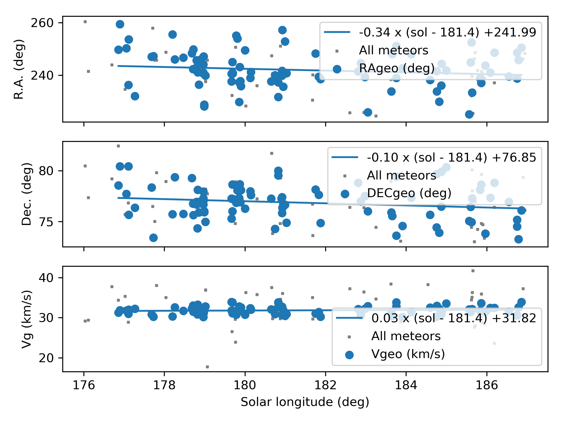 Vida D., Gural P., Brown P., Campbell-Brown M., Wiegert P. (2020b). “Estimating trajectories of meteors: an observational Monte Carlo approach – II. Results”. Monthly Notices of the Royal Astronomical Society, 491, 3996–4011.