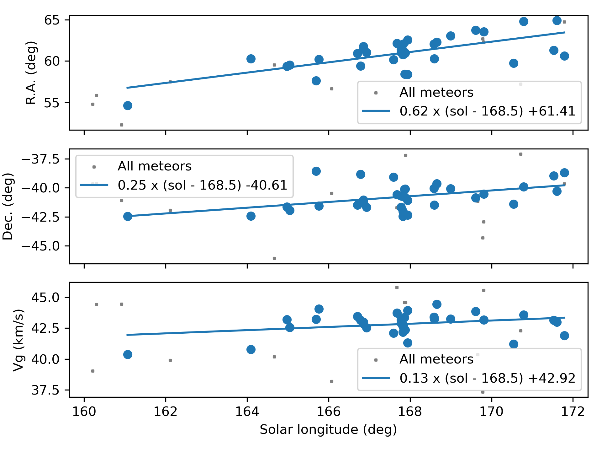 Vida D., Gural P., Brown P., Campbell-Brown M., Wiegert P. (2020b). “Estimating trajectories of meteors: an observational Monte Carlo approach – II. Results”. Monthly Notices of the Royal Astronomical Society, 491, 3996–4011.