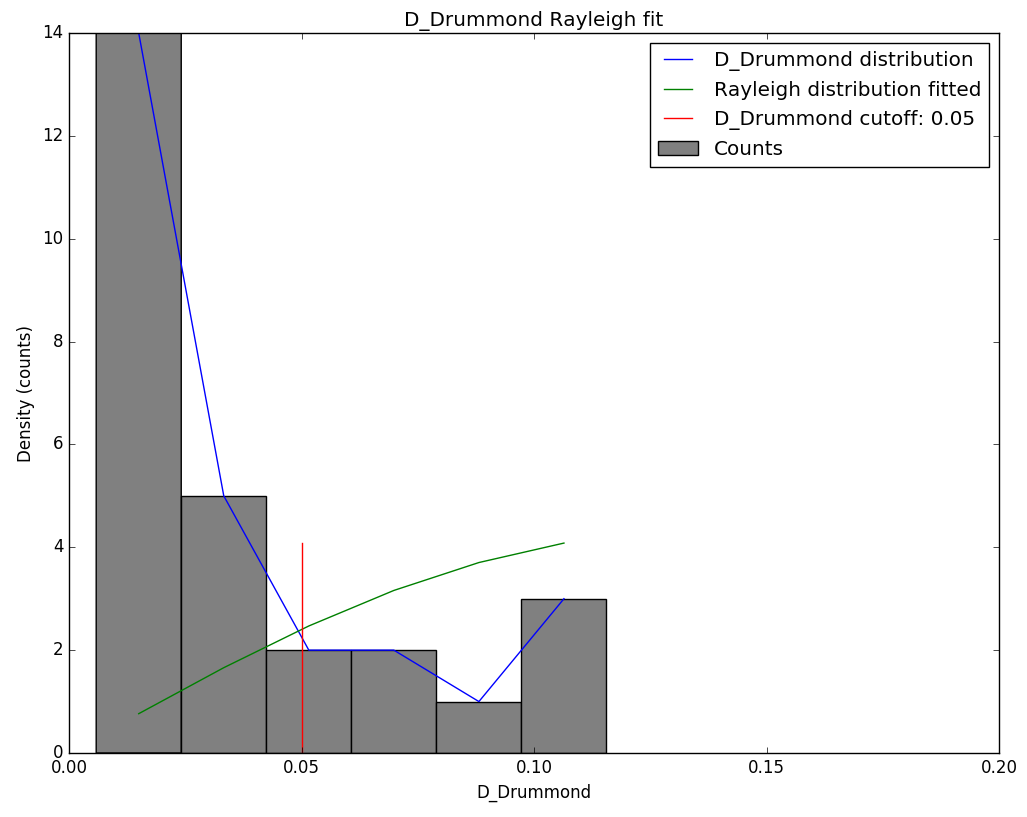 Figure 7 – Rayleigh distribution fit and Drummond DD criterion cutoff.