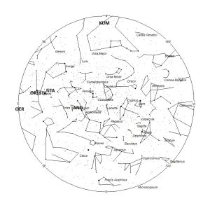 I have also included charts of the sky that display the radiant positions for evening, midnight, and morning. The center of each chart represents the sky directly overhead at the corresponding hour. These charts are oriented for facing south but can be used for any direction by rotating them accordingly. A planisphere or planetarium app is also useful for showing the sky at any time of night on any date of the year.