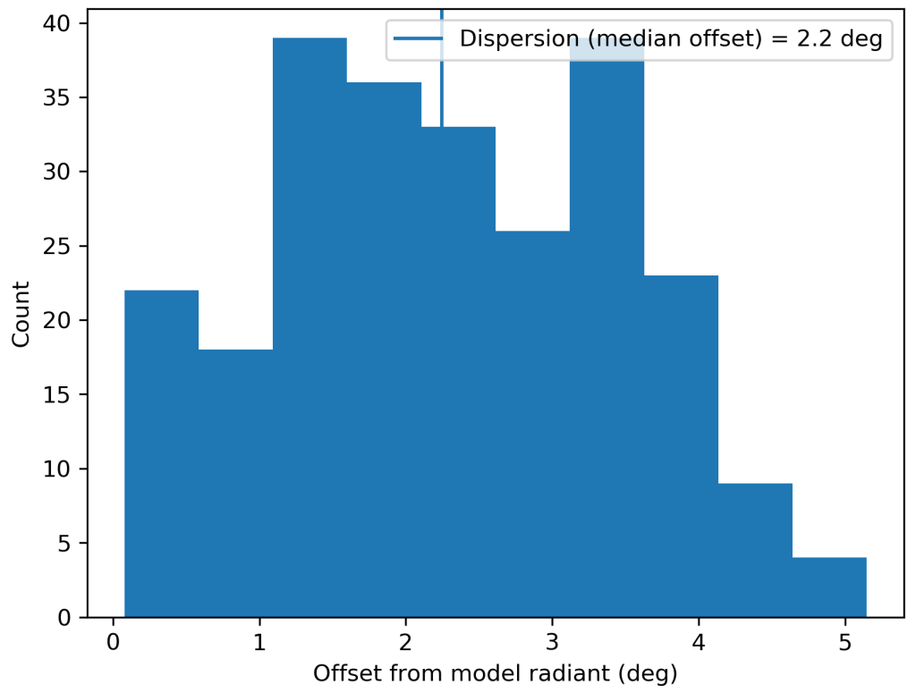Figure 2 – Dispersion median offset on the radiant position.