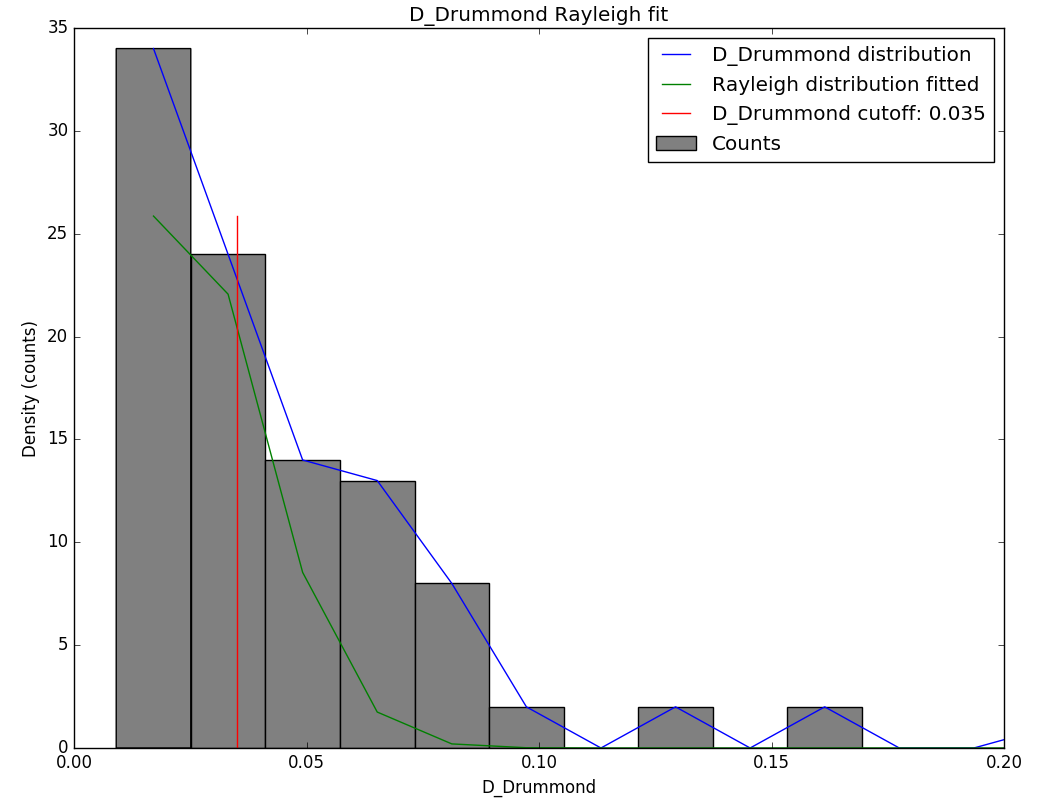 Figure 9 – Rayleigh distribution fit and Drummond DD criterion cutoff.