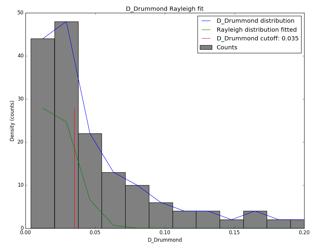 Figure 9 – Rayleigh distribution fit and Drummond DD criterion cutoff.