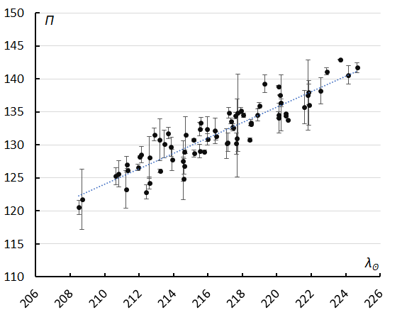 Figure 14 – The evolution of the longitude of perihelion Π in function of the solar longitude λʘ.