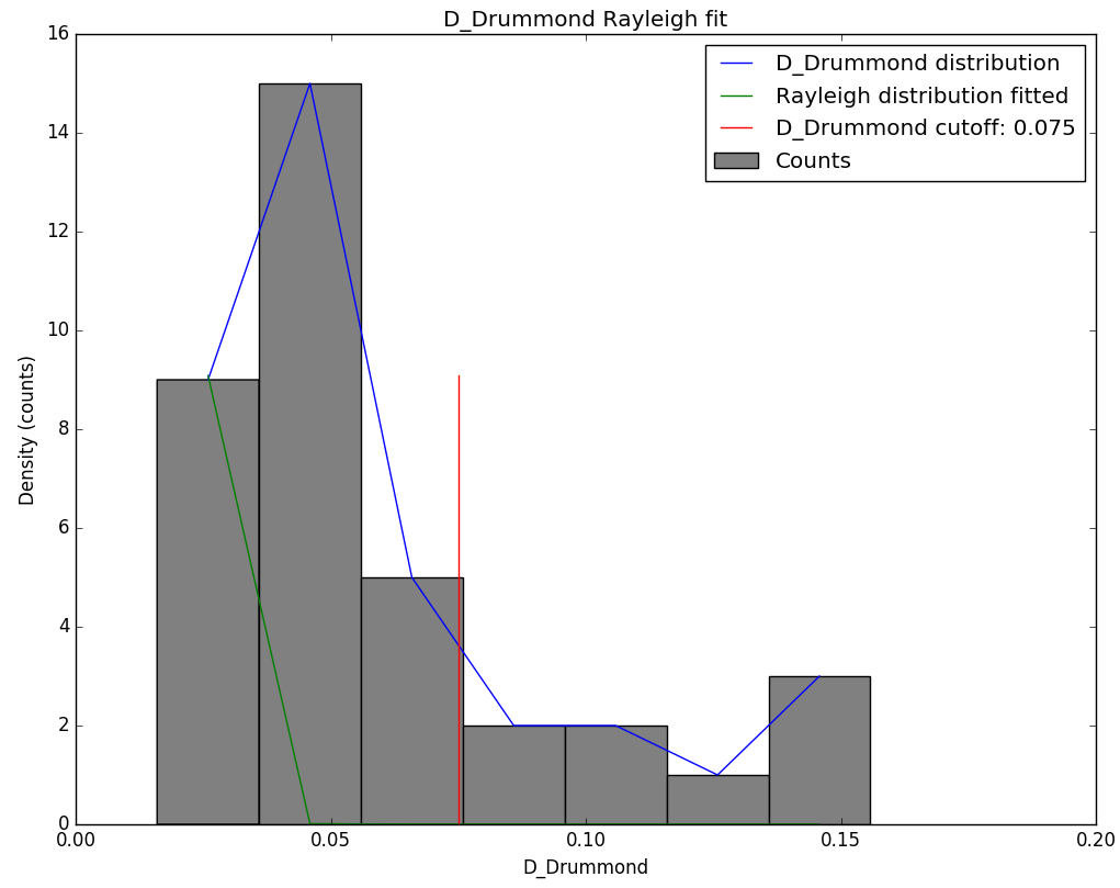 Figure 9 – Rayleigh distribution fit and Drummond DD criterion cutoff.