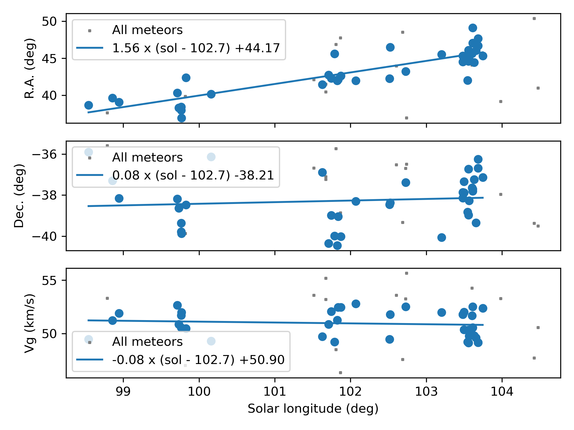 Vida D., Gural P., Brown P., Campbell-Brown M., Wiegert P. (2020b). “Estimating trajectories of meteors: an observational Monte Carlo approach – II. Results”. Monthly Notices of the Royal Astronomical Society, 491, 3996–4011.