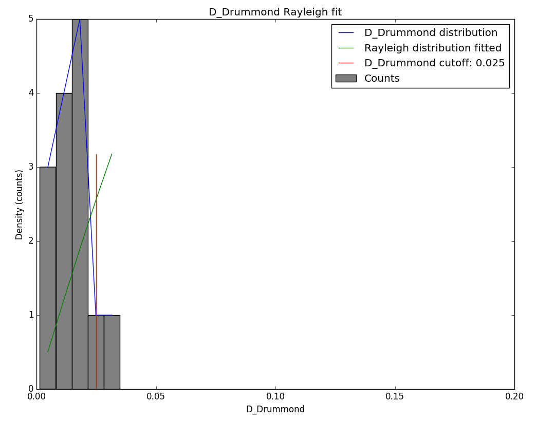 Figure 10 – Rayleigh distribution fit and Drummond DD criterion cutoff.