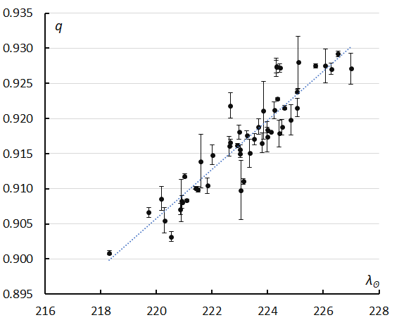 Figure 18 – The evolution of the perihelion distance q in function of the solar longitude λʘ for the 2025 data.