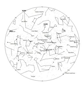 The January xi Ursae Majorids (XUM) were discovered by Japanese observers of SonotoCo based on video observations in 2007-2008. This shower is active from January 10-25, with maximum activity occurring on the 19th. The radiant is currently located at 11:16 (169) +33, which lies in southern Ursa Major, 1 degree west of the 3rd magnitude star known as Alula Borealis (nu Ursae Majoris). These meteors are best seen near 03:00 LST when the radiant lies highest in the northern sky. Hourly rates are expected to be near one per hour as seen from the northern hemisphere and less than 1 as seen from south of the equator. These meteors encounter the atmosphere at 41 km/sec., which would produce meteors of medium velocity.