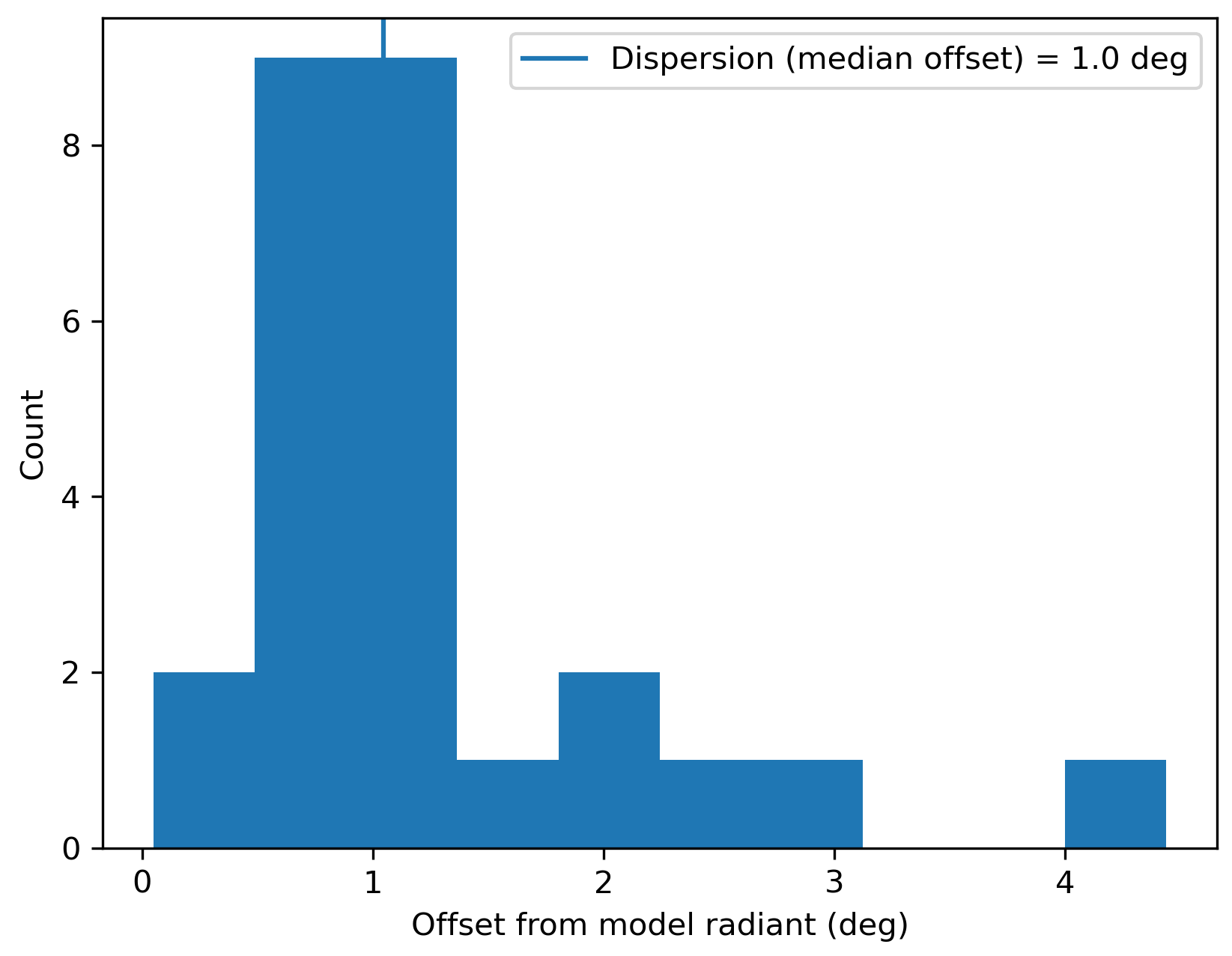 Figure 3 – Dispersion median offset on the radiant position.
