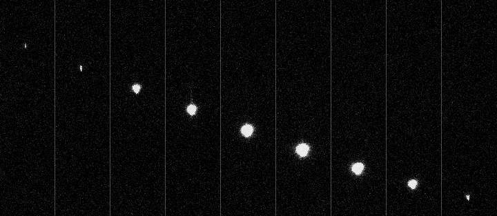 Figure 2 – Individual frames from the Derazhnoye_30 camera show the head of the meteor in motion at intervals of 250 ms.