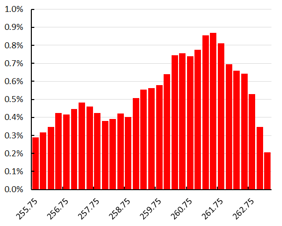 Figure 14 – The percentage of M2025-Y1-meteors relative to the total number of meteors without the Geminids.