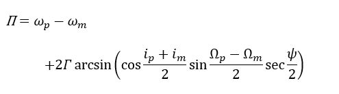 Next, we calculate Π, the angle between the perihelion points: