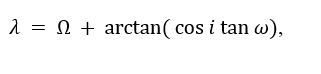 where λ has 180° added if cos ω < 0.