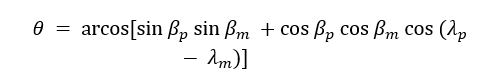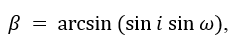Then we calculate ψ, the angle between the two orbital planes from: