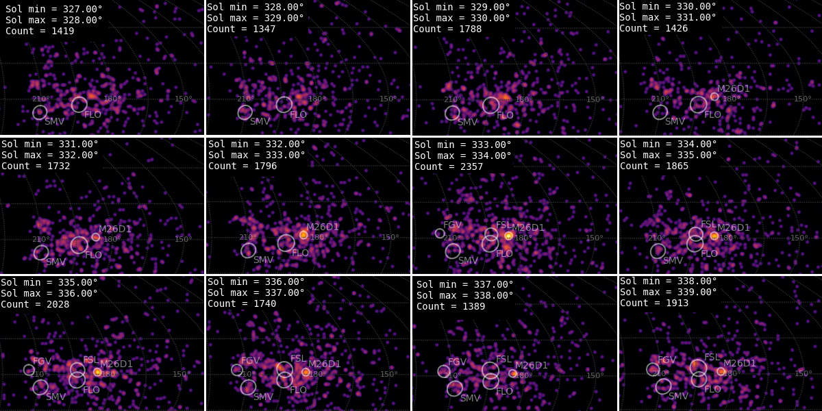 Figure 2 – Changes in the radiant appearance of the M2026-D1 shower during its activity period.