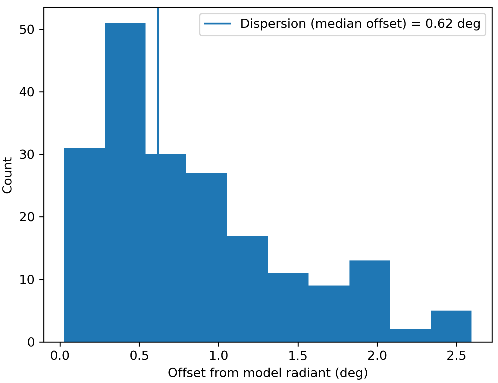 Figure 3 – Dispersion median offset on the radiant position.