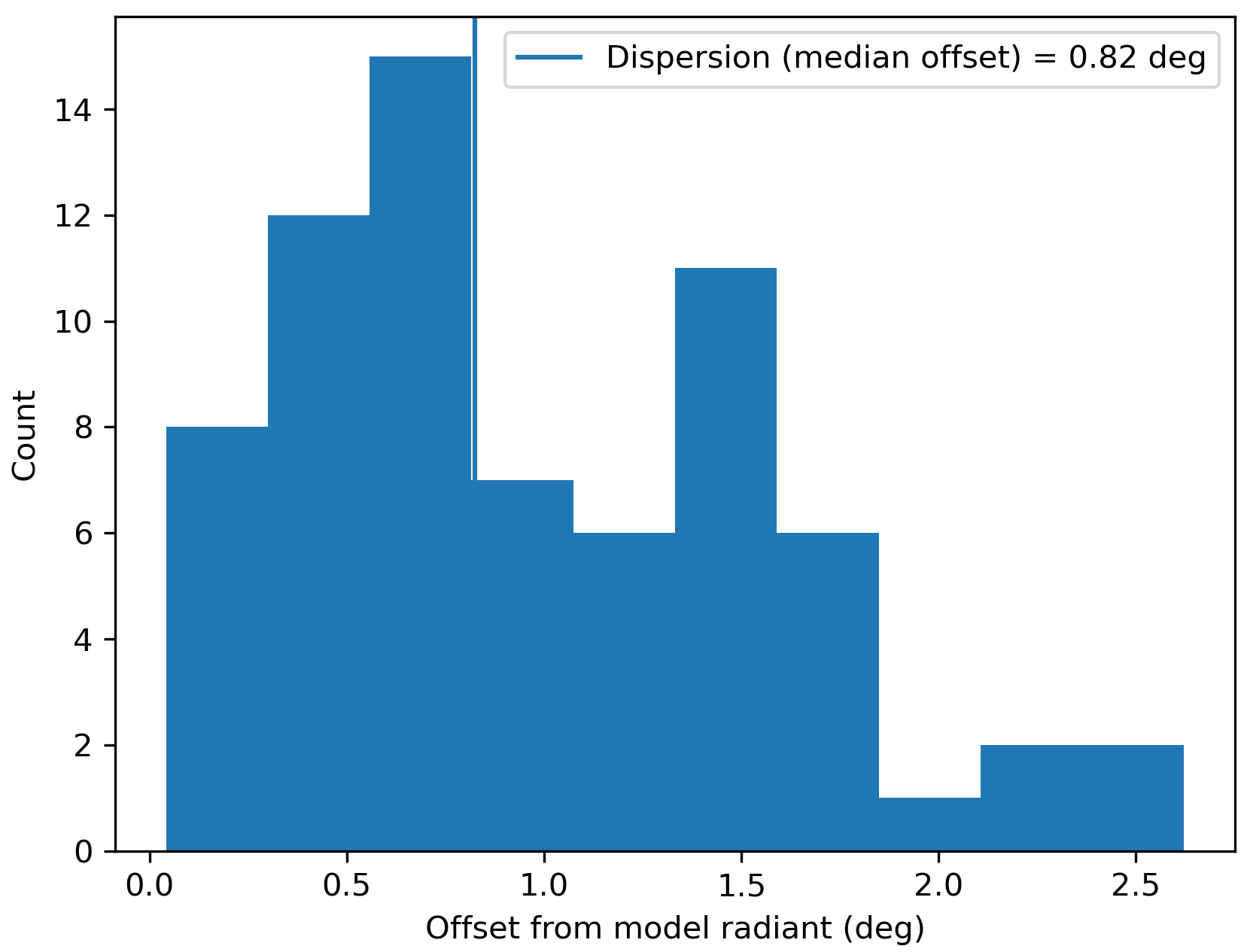 Figure 2 – Dispersion median offset on the radiant position.