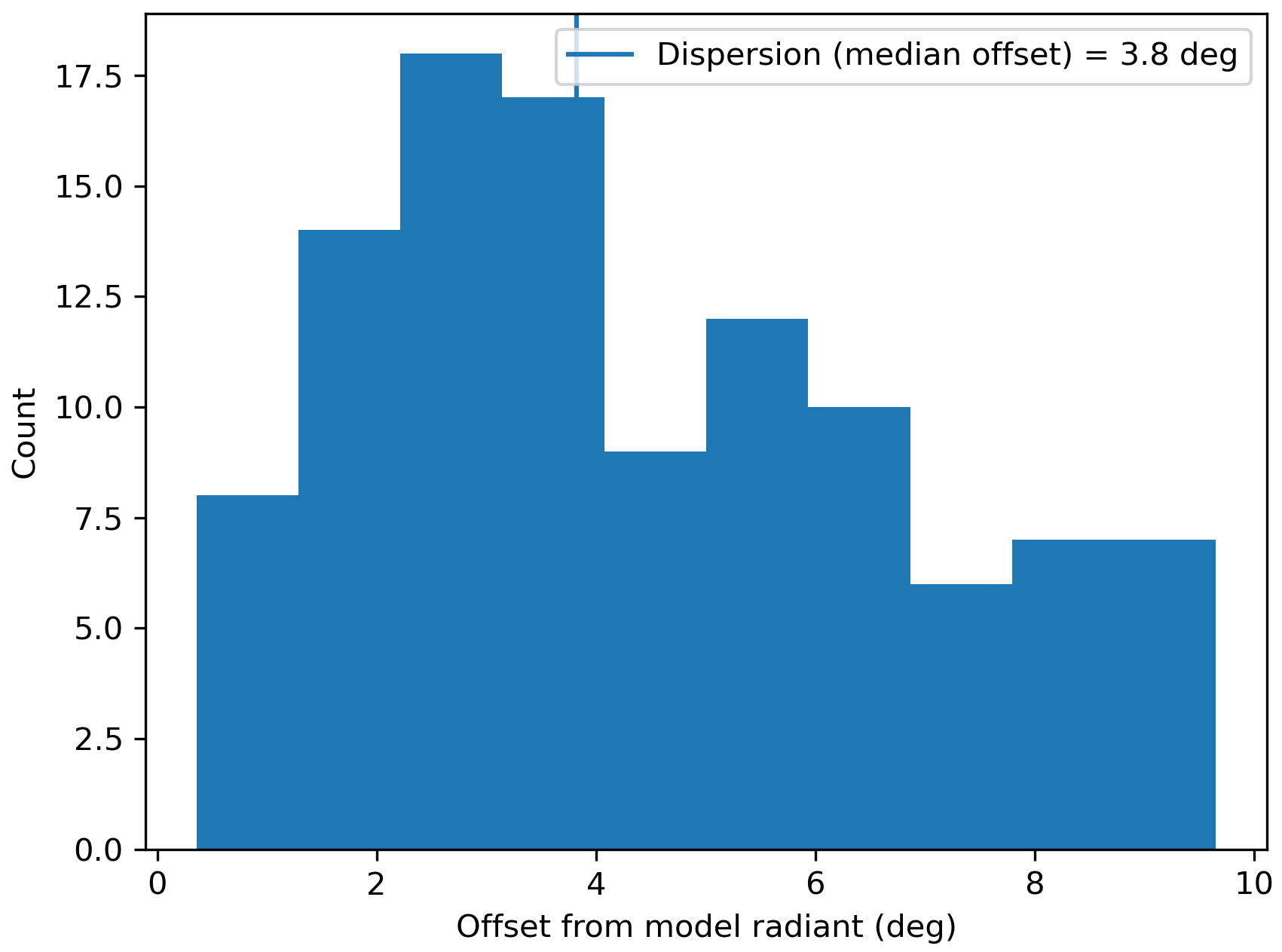 Figure 2 – Dispersion median offset on the radiant position.