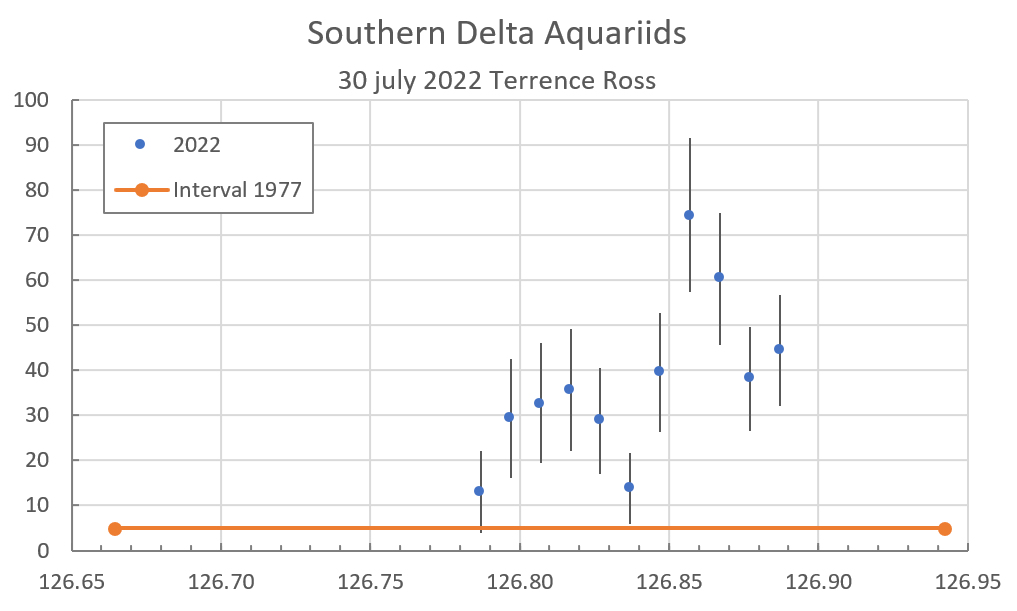 Figure 9. The ZHR of the SDAs as observed by Terrence Ross on July 29, 2022.