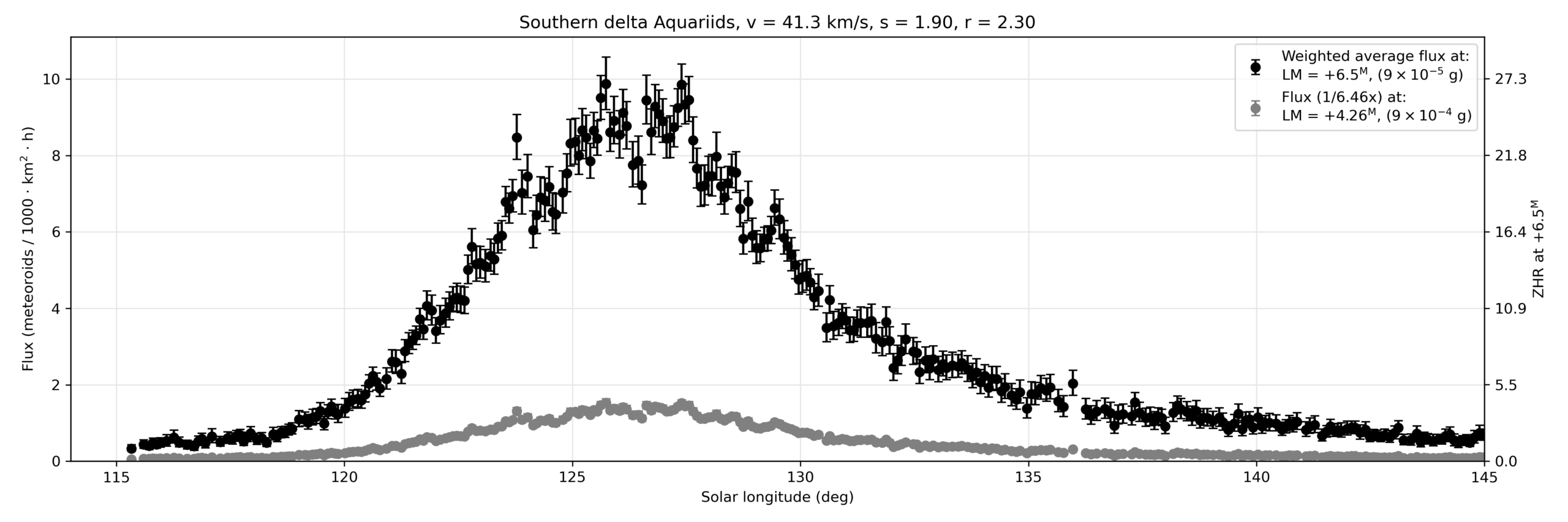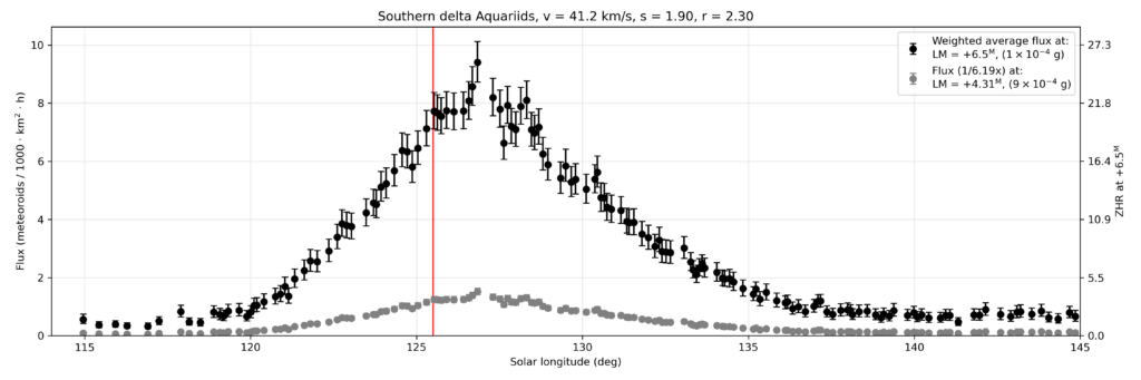 Figure 10. ZHR/flux curve of the GMN network of the SDAs from 2022 [13, 14, 16].