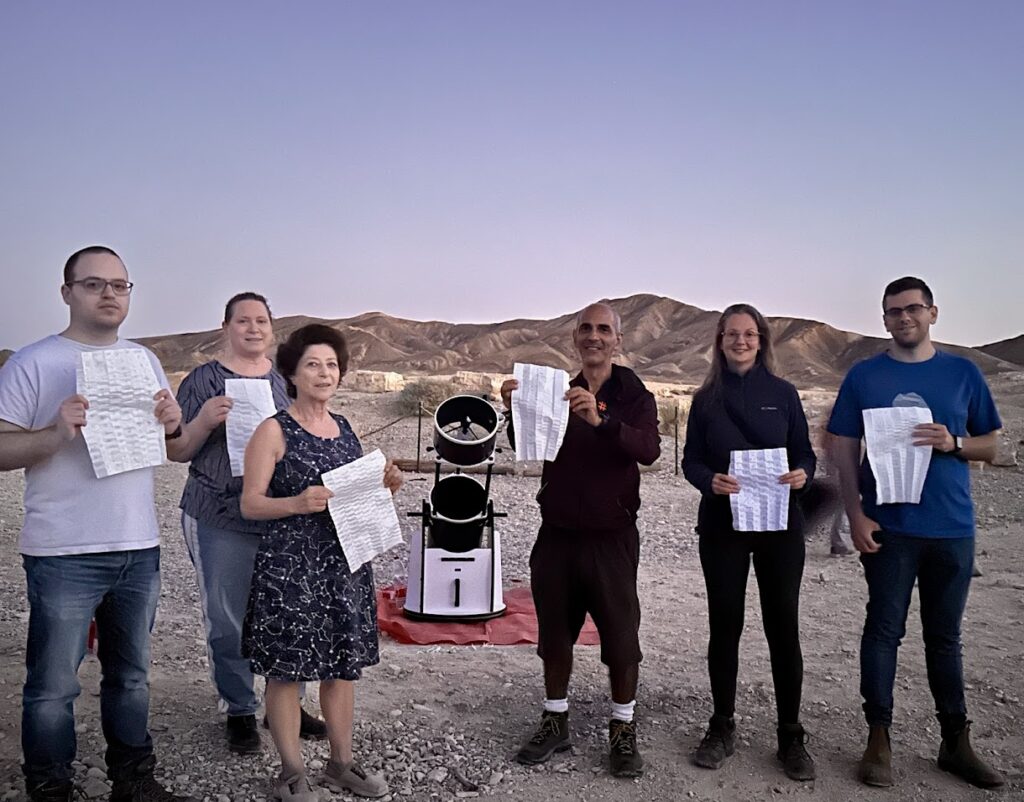 Figure 15: the Israelian meteor observers in 2025: from left to right Omri Katz, Noga Karni, Anna Levin, Shlomi Eini, Ella Ratz and Ido Braun. It is thanks to groups and individual observers that visual analyses with useful results can still be made. This article is therefore a tribute to the visual meteor observer. Visual meteor observations are the most demanding but also the most satisfying observation method. Watching meteors live under a brilliant clear sky is so much fun!