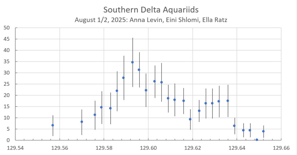 Figure 12. ZHR profile of the SDAs during the night of 1/2 August 2025, Anna Levin, Eini Shlomi, Ella Ratz and Thomas Weiland.