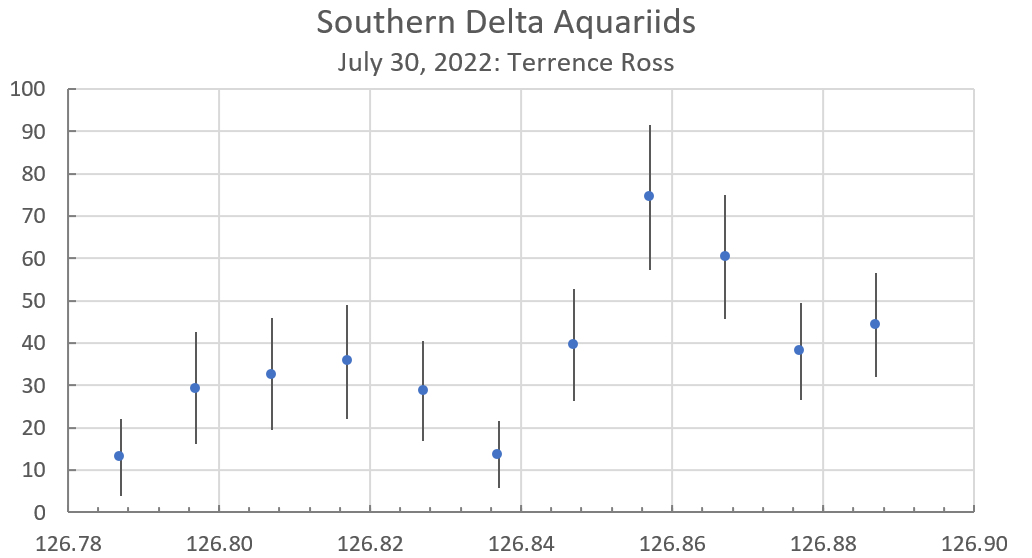 Figure 9. The ZHR of the SDAs as observed by Terrence Ross on July 29, 2022.