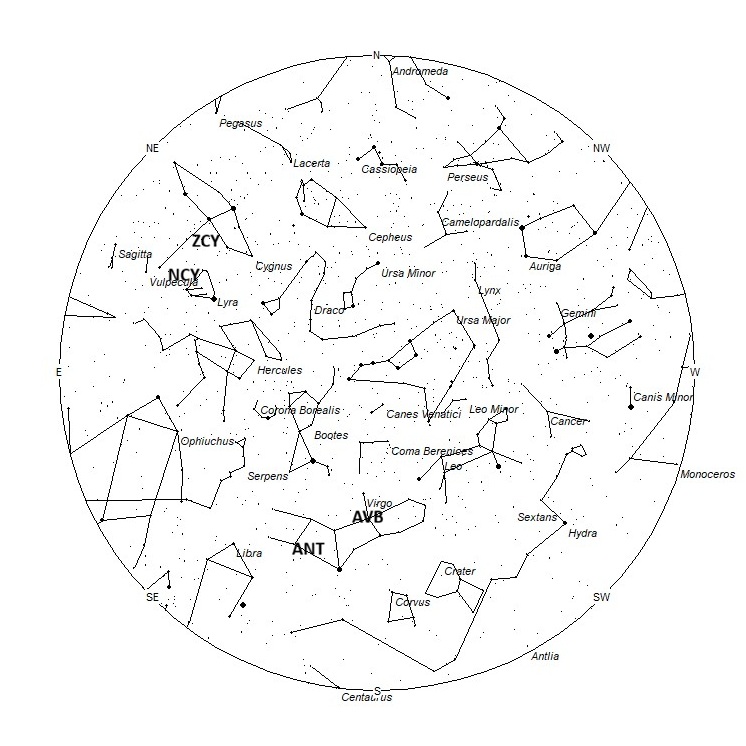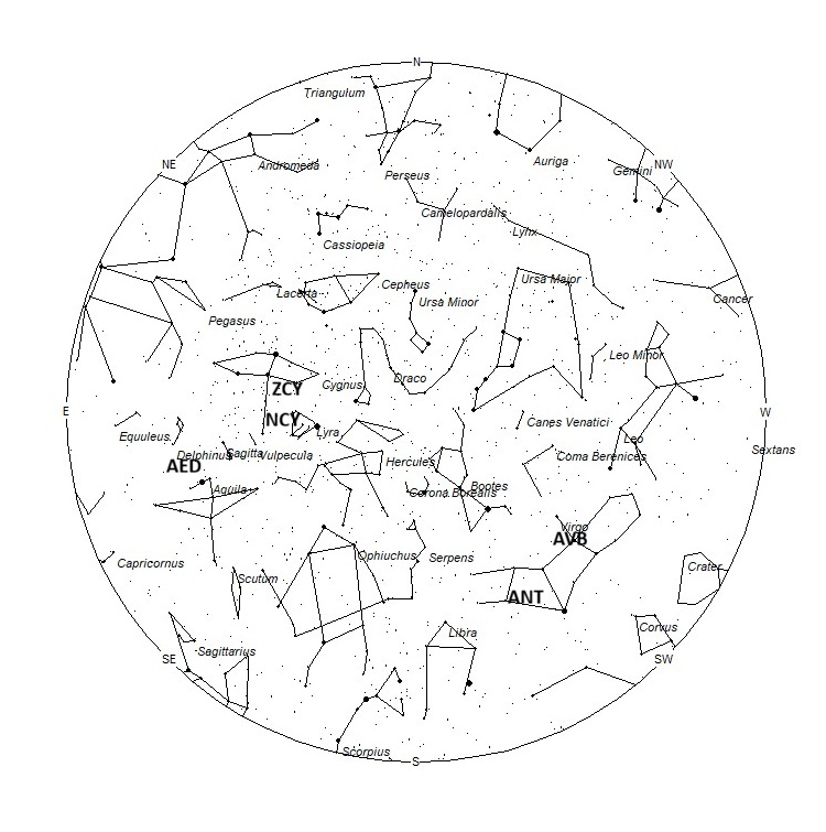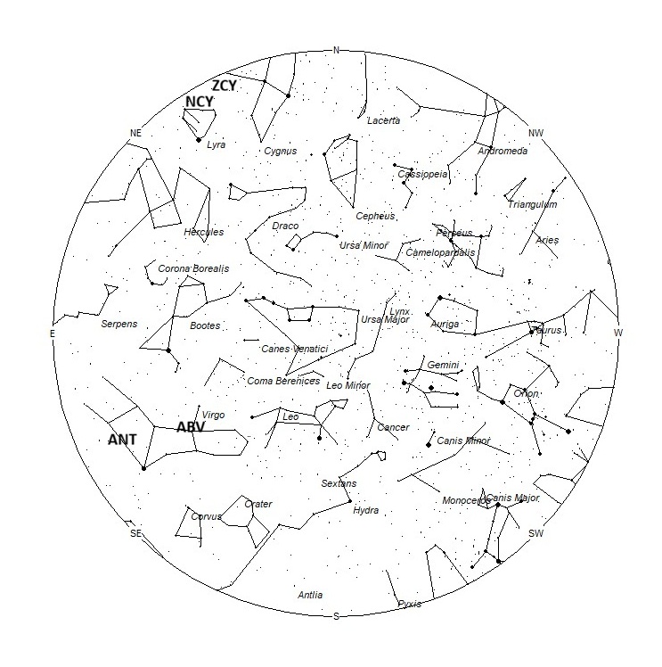 Radiant Positions at 22:00 Local Summer Time