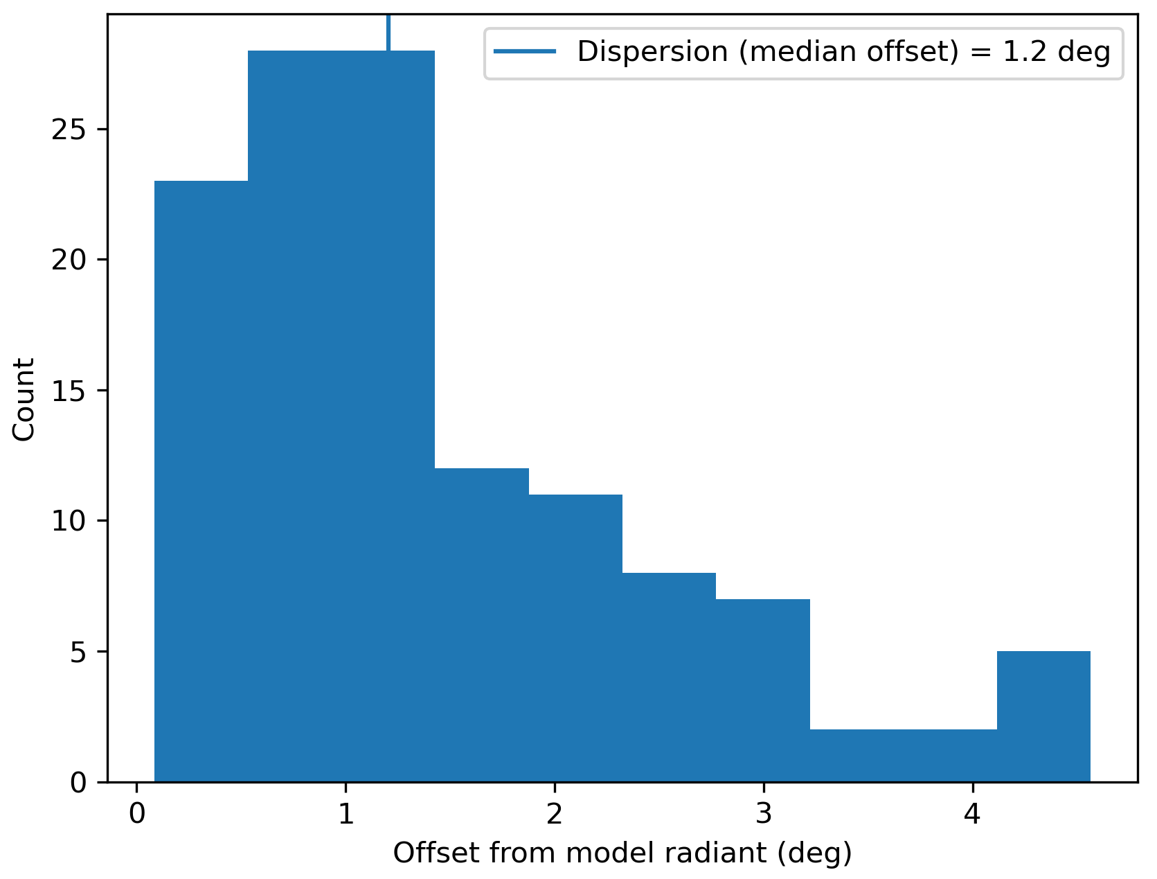 Figure 2 – Dispersion median offset on the radiant position.