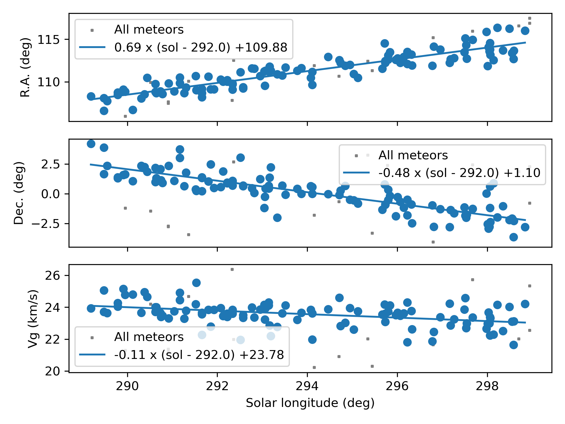 Jopek T. J., Rudawska R. and Pretka-Ziomek H. (2006). “Calculation of the mean orbit of a meteoroid stream”. Monthly Notices of the Royal Astronomical Society, 371, 1367–1372.