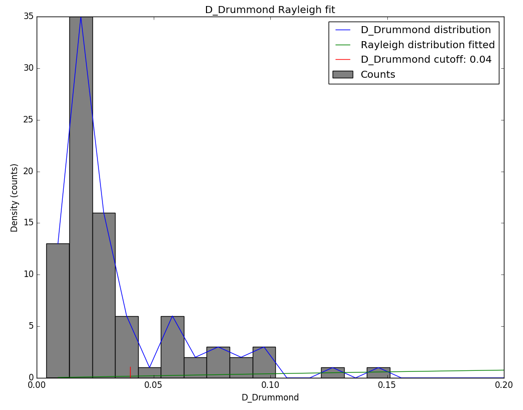 Figure 6 – Rayleigh fit on the Drummond criterion for delta1-Canis Minorid, 2026 data.